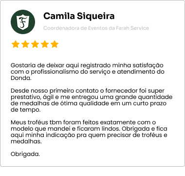 Produzimos medalhas e troféus personalizados para empresas, escolas, academias e eventos em geral. Com mais de 20 anos de experiência, a Placas Donda une qualidade premium, prazos rápidos e o melhor preço do mercado.